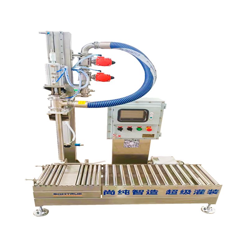 Kun tyhjä tynnyri on toimitettu paikalleen, alkaa suuren virtauksen täyttö. Kun täyttömäärä saavuttaa karkean täytön tavoitetilavuuden, suuri virtausnopeus suljetaan ja pienen virtauksen täyttö alkaa. Kun hienotäytön tavoitearvo on saavutettu, venttiilin runko suljetaan ajoissa. Se on yleisesti käytetty kemiallisten raaka-aineiden pakkauskone.